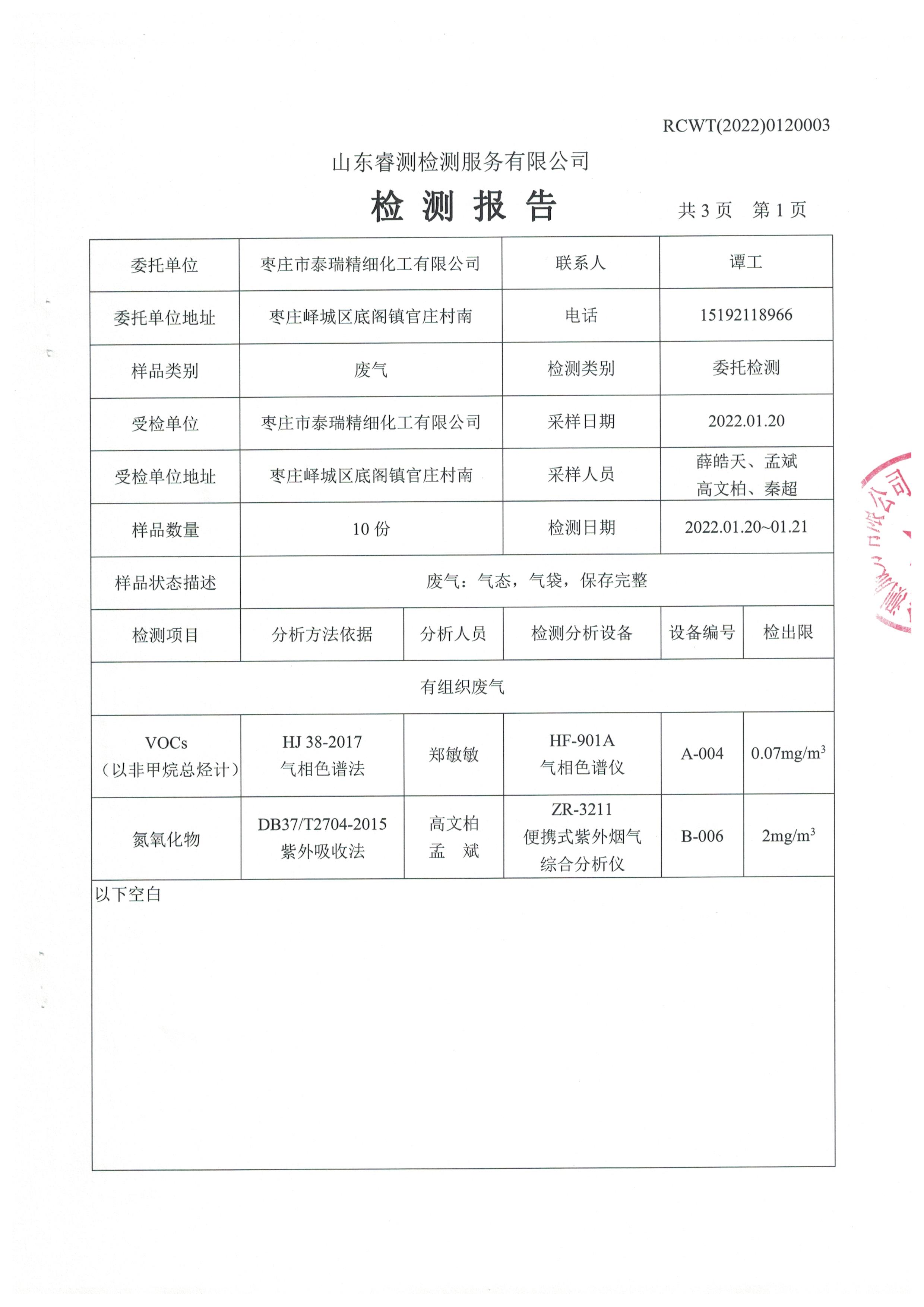 2022年1月份自行檢測(cè)報(bào)告
