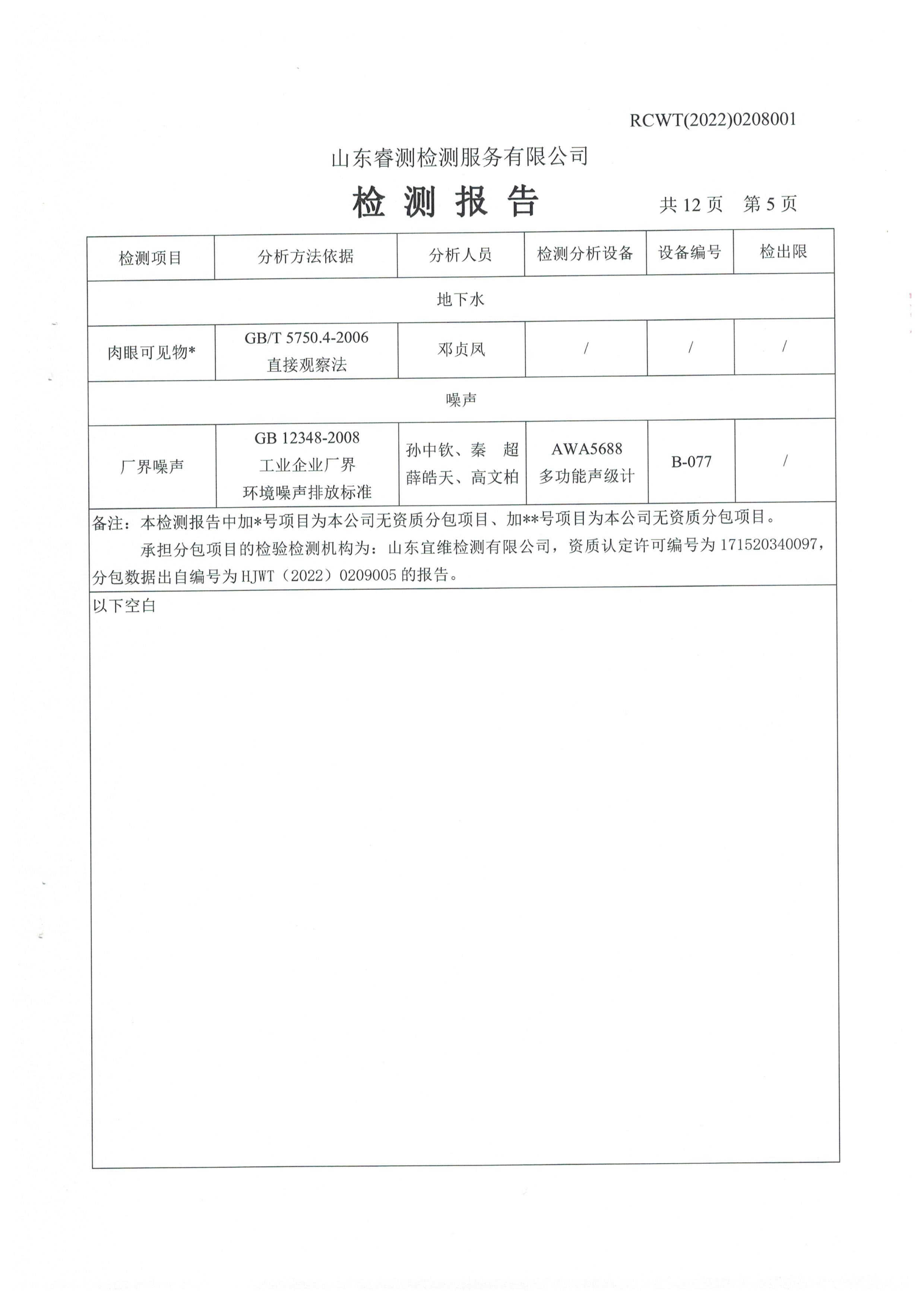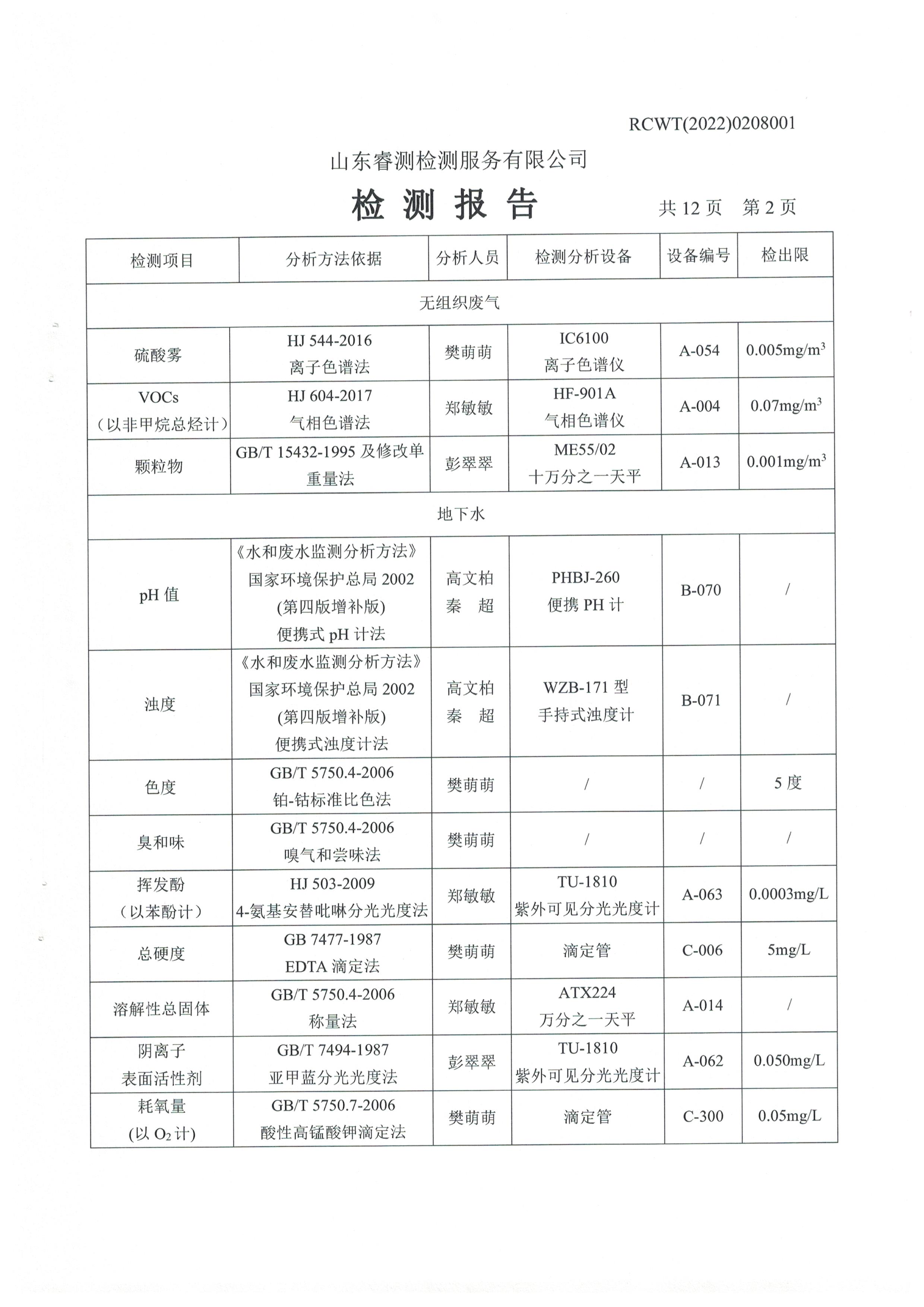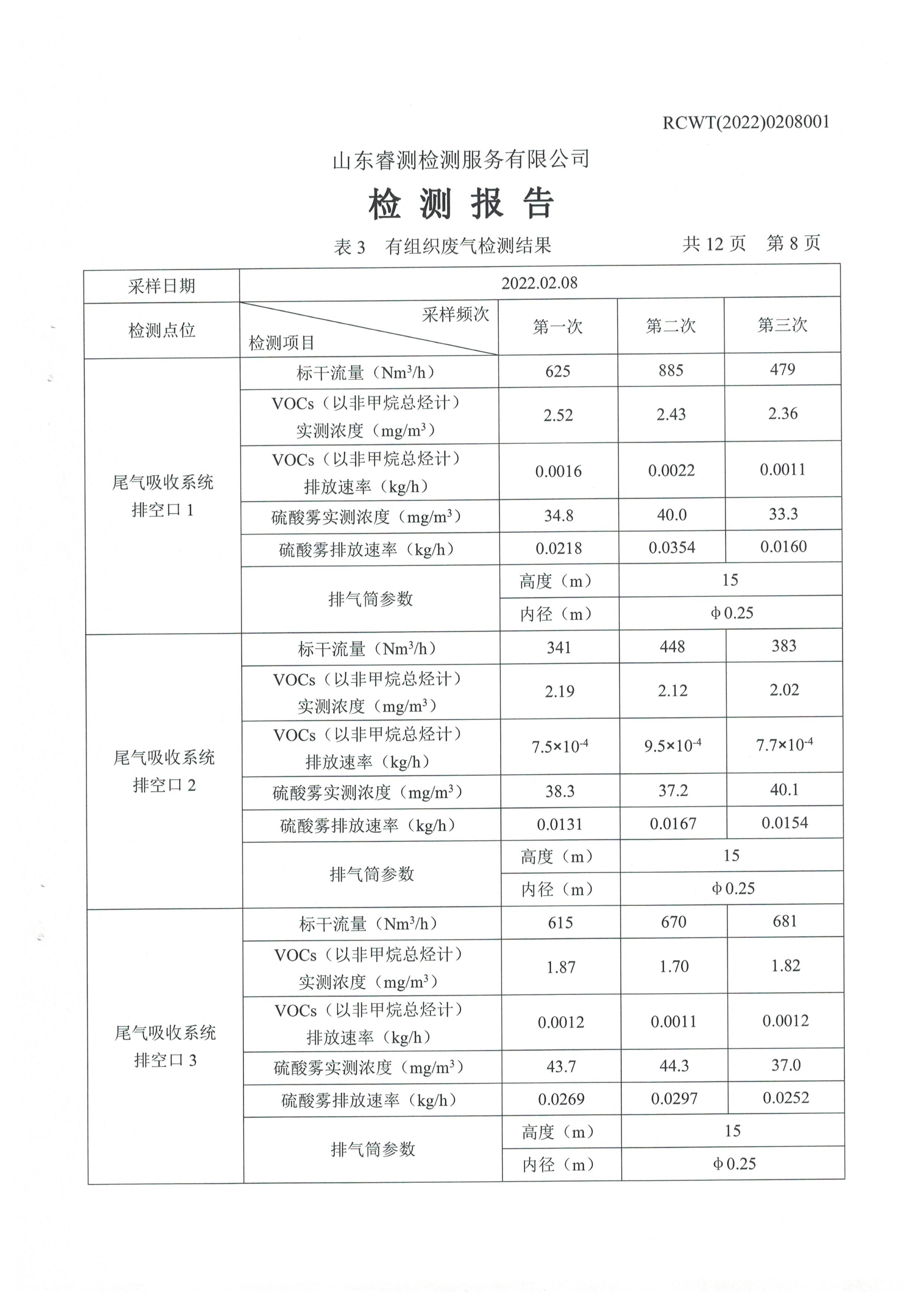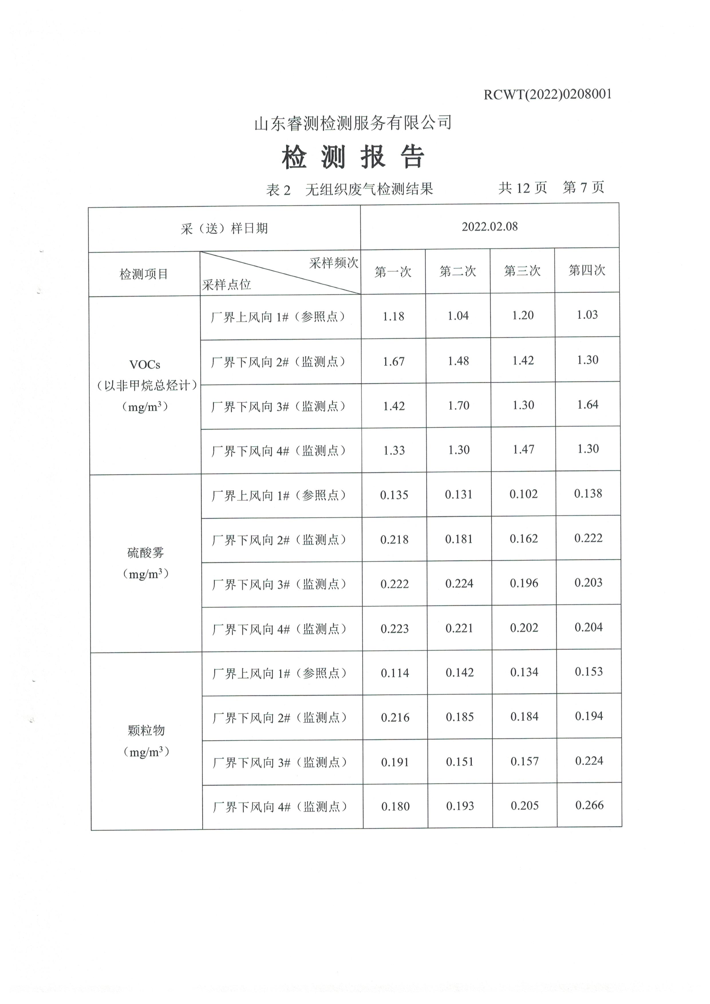 2022年2月份及第一季度自行檢測報告