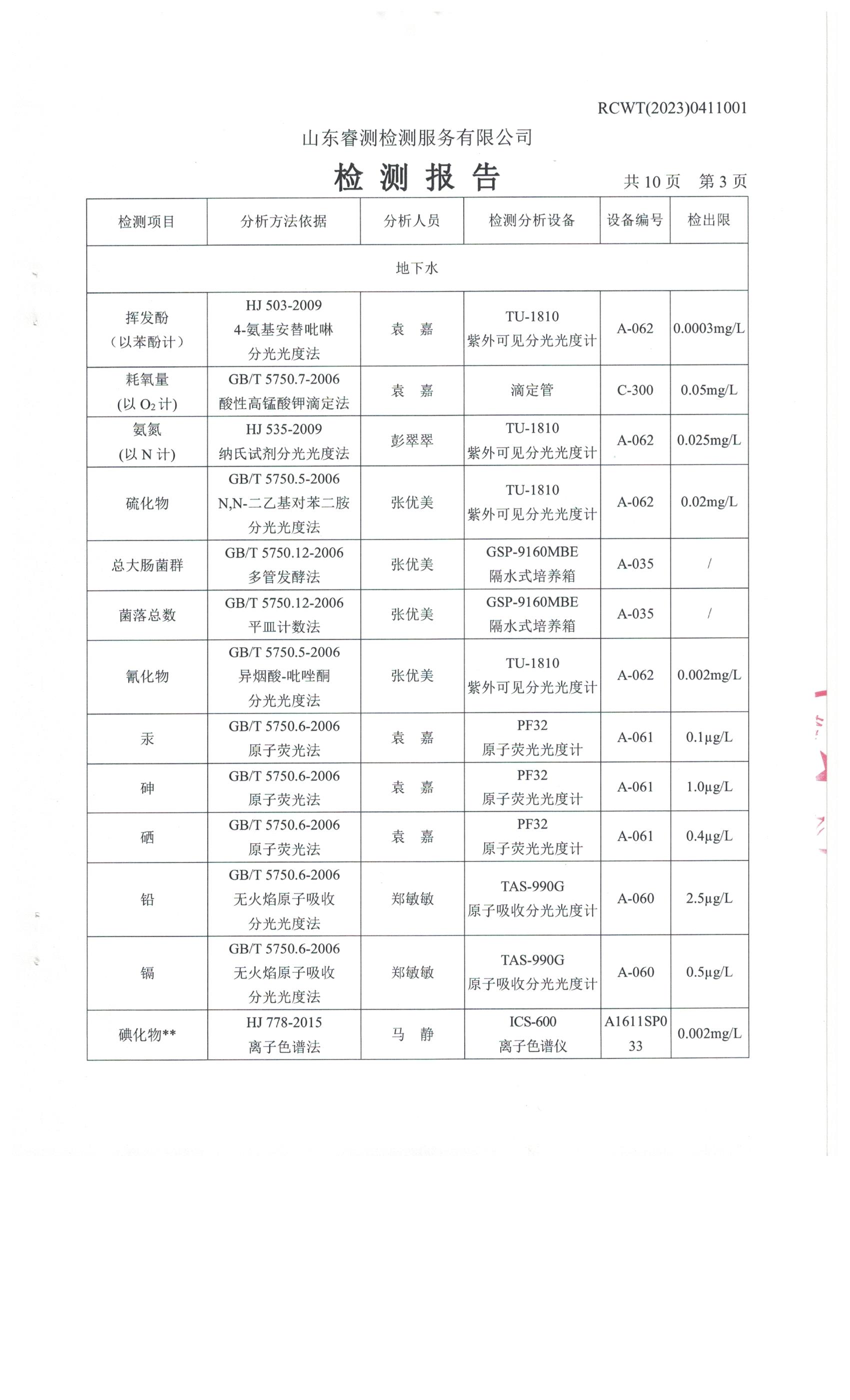 2023年第4季度(10月份)檢測(cè)報(bào)告