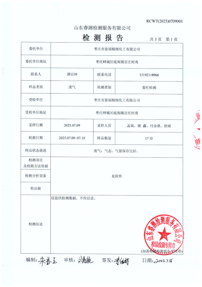 2025年泰瑞精細化工有限公司土壤檢測報告