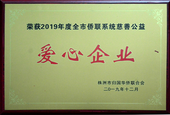 集團(tuán)公司榮獲“株洲市2019年度僑聯(lián)系統(tǒng)慈善公益愛(ài)心企業(yè)”稱號(hào)